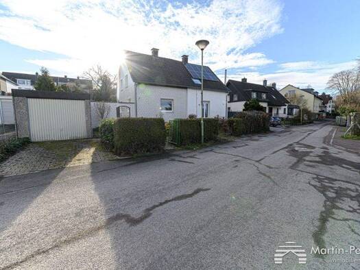 Diese Doppelhaushälfte in einer ruhigen Anliegerstraße von Hagen Emst wurde ursprünglich 1939 errichtet und 1949 um einen kleineren Anbau ergänzt. Das Haus ist voll unterkellert, verfügt über eine Ga...