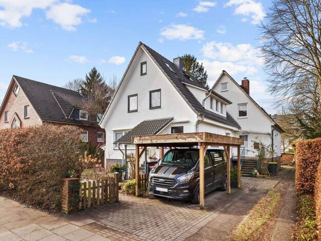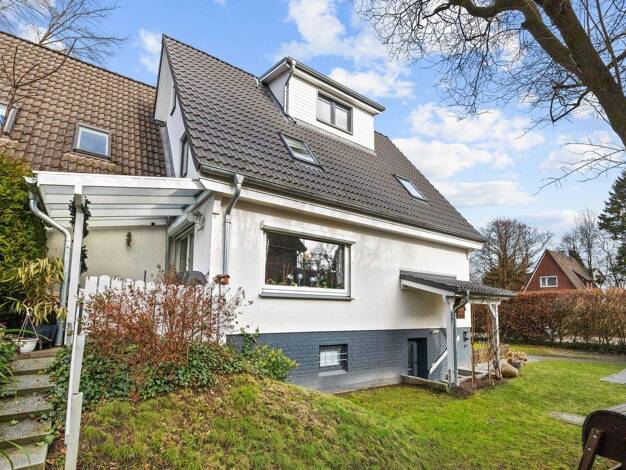 Die Doppelhaushälfte aus dem Jahr 1978 befindet sich auf einem ca. 345 m² großen Grundstück und steht unter Denkmalschutz. Sie liegt innerhalb der Siedlung "Hamburg-Bau 78", einem Ensemble, das für s...