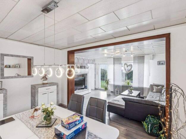 Dieses gepflegte Zweifamilienhaus in Bergkamen präsentiert sich auf einem ca. 738 m² großen Grundstück und bietet eine großzügige Gesamtwohnfläche von rund 173 m². Die Immobilie umfasst zwei eigenstä...