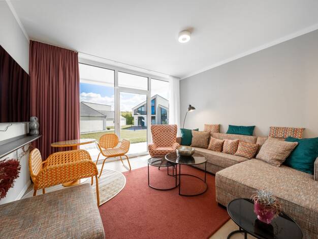 Diese Maisonette-Einheit erstreckt sich über zwei Ebenen und verbindet die Großzügigkeit eines Hauses mit der Effizienz einer modernen Ferienimmobilie. Mit ca. 120 m² Wohnfläche bietet sie ein durchd...