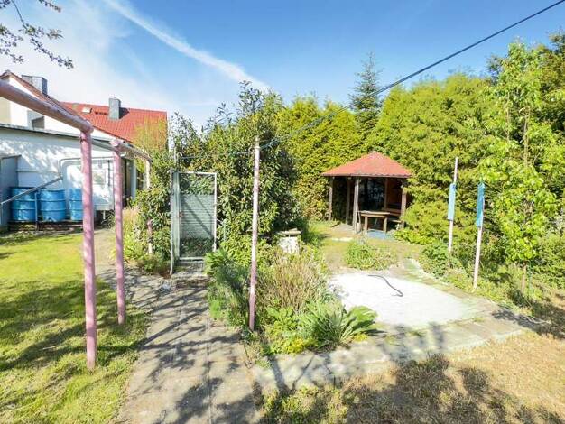 Die Doppelhaushälfte wurde 1939 in massiver Bauweise erbaut. Durch einen Anbau um 1975 wurde die Wohnfläche vergrößert. Zum Haus gehört außerdem ein Garten mit verschiedenen Bepflanzungen und Baumbes...