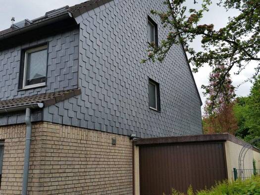 Die Doppelhaushälfte ist zweigeschossig und verfügt über einen Keller sowie ein teilweise ausgebautes Dachgeschoss. Es bietet eine Wohnfläche von 150 Quadratmetern und verfügt über eine Garage. Es wu...