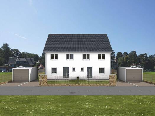 In attraktiver, familienfreundlicher Lage entsteht eine moderne Doppelhaushälfte in Massivbauweise. Das Haus besticht durch seine zeitlose Architektur mit klassischem Satteldach, großzügiger Raumgest...