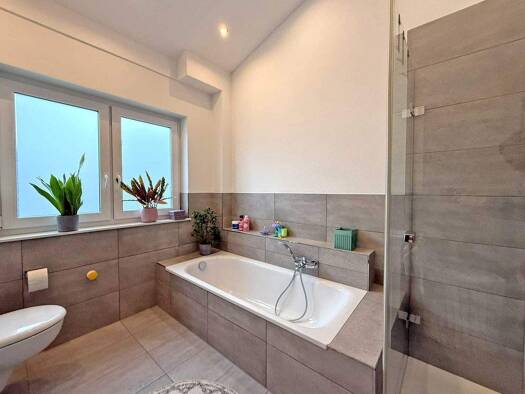 Diese Doppelhaushälfte, ca. aus dem Jahr 1958, überzeugt durch ihre vielseitige Nutzungsmöglichkeit sowie eine kontinuierliche Modernisierung. Auf insgesamt ca. 140 m² Wohnfläche und zusätzlichen ca....