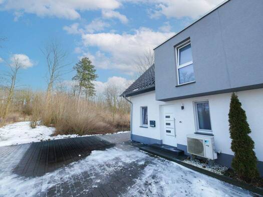 Diese moderne Doppelhaushälfte aus dem Jahr 2018 vereint zeitgemäße Architektur, energieeffiziente Bauweise im KfW55-Standard und ein durchdachtes Wohnkonzept zu einem harmonischen Gesamtbild. Mit ca...