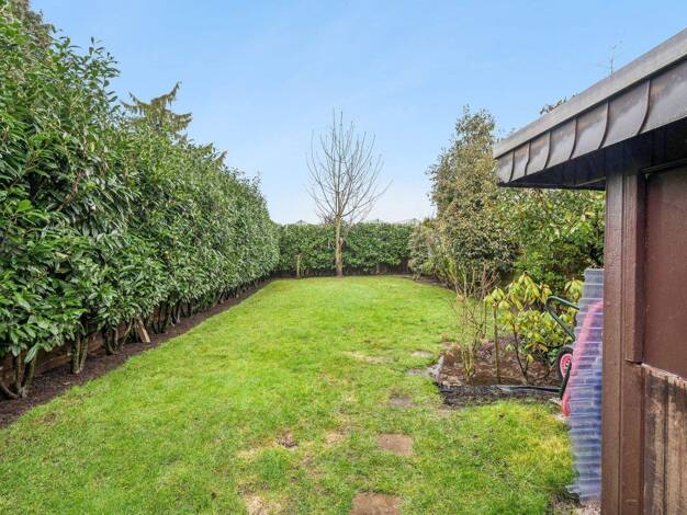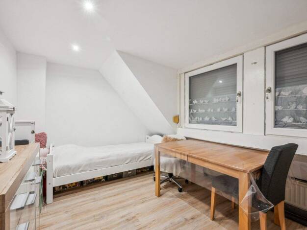 Die linke Hälfte eines Doppelhauses verfügt über ein Erdgeschoss, kein Untergeschoss, ein ausgebautes Dachgeschoss und eine Wohnfläche von 126 m². Zur Ausstattung gehören eine Terrasse, ein Garten, e...