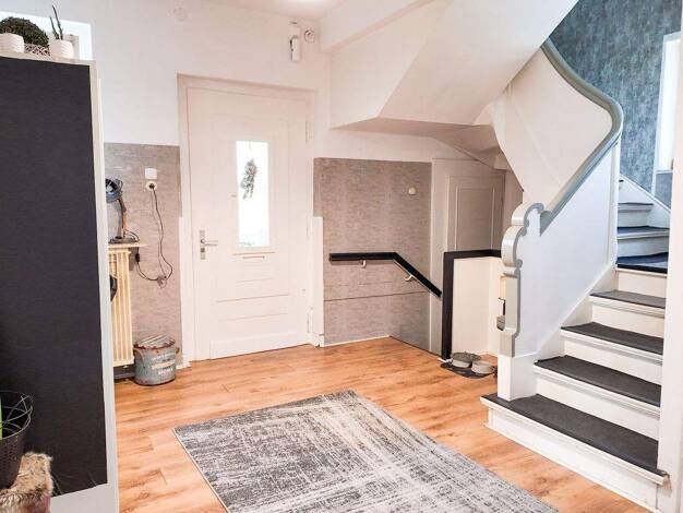 Diese schöne Doppelhaushälfte befindet sich in zentraler Wohnlage von Spelle. Das Grundstück ist südlich ausgerichtet. Im Haus-Eingangsbereich befindet sich die Diele mit Treppenhaus und Gäste-WC. Da...