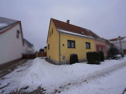 Die Doppelhaushälfte wurde 1939 in massiver Bauweise erbaut. Durch einen Anbau um 1975 wurde die Wohnfläche vergrößert. Zum Haus gehört außerdem ein Garten mit verschiedenen Bepflanzungen und Baumbes...