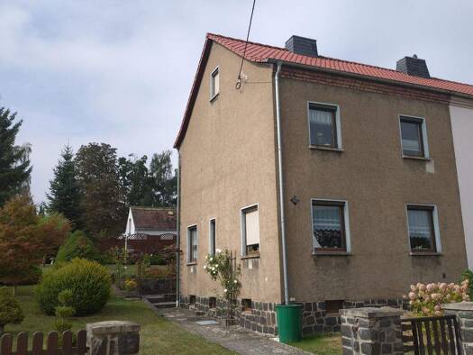 Die charmante Doppelhaushälfte in ruhiger Wohnlage von Wermsdorf präsentiert sich mit einem gepflegten Erscheinungsbild und klassischer Fassadengestaltung. Auf einem 340 m² großen Grundstück bietet d...