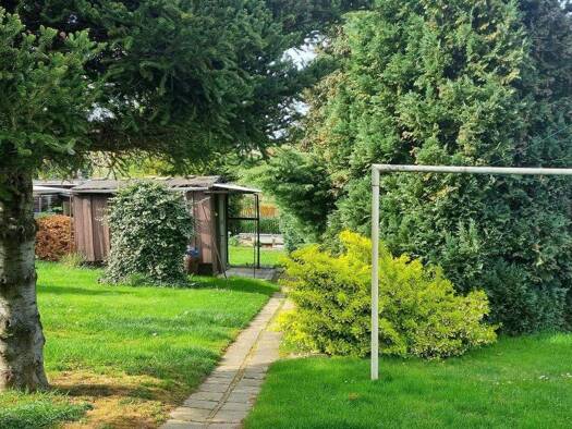 Zum Verkauf steht eine Einfamilienhaushälfte auf einem großen Grundstück, welches nach telefonischer Auskunft des Bauamtes geteilt und mit einem weiteren Haus an der Straße bebaut werden kann. Altern...