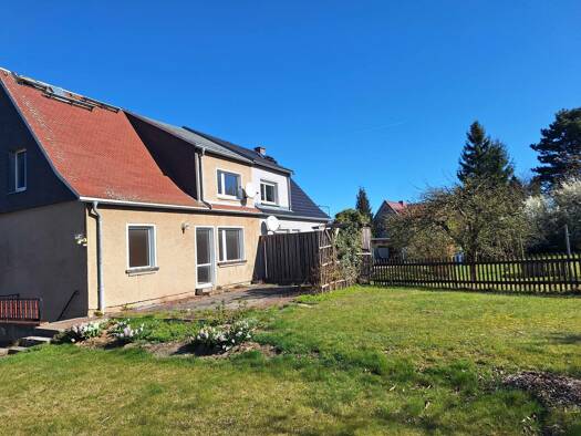 Die charmante Doppelhaushälfte in ruhiger Wohnlage von Wermsdorf präsentiert sich mit einem gepflegten Erscheinungsbild und klassischer Fassadengestaltung. Auf einem 340 m² großen Grundstück bietet d...