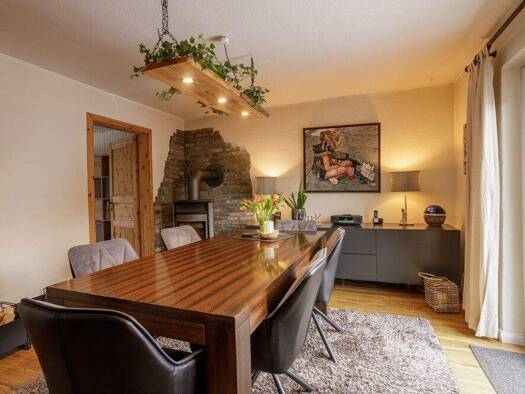 Diese gut gepflegte Immobilie bietet allen Komfort für ein gemütliches Zuhause. Beim Betreten des Hauses leitet ein Flur in das Esszimmer, welches gesellige Zusammenkünfte mit Familie und Freunden ve...
