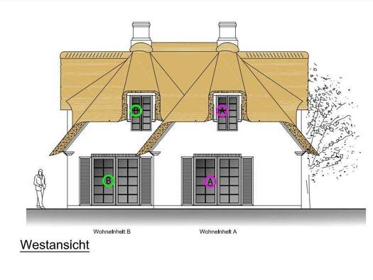 Zum Verkauf stehen eine Reetdach-Doppelhaushälfte und ein zusätzlicher Bungalow im Herzen Westerlands in Strand und Stadt naher Lage. Die Innenstadt erreichen Sie in 4 Minuten, die Bäckerei Abeling i...