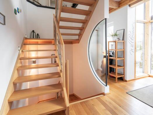 Das Wohlfühlhaus: Schon beim Betreten dieses besonderen Zuhauses spürt man die Liebe zum Detail: Der Duft von Holz, das warme Licht, das durch die großen Fenster fällt, und die harmonische Gestaltung...