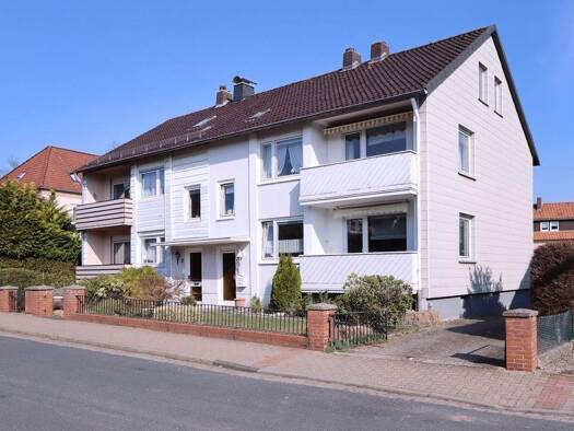 Großzügige, massive und 2,5-geschossige Doppelhaushälfte mit einem Satteldach, aufgeteilt in zwei separate Wohneinheiten direkt in der Stadt Springe. Über das Treppenhaus gelangen Sie in die jeweilig...