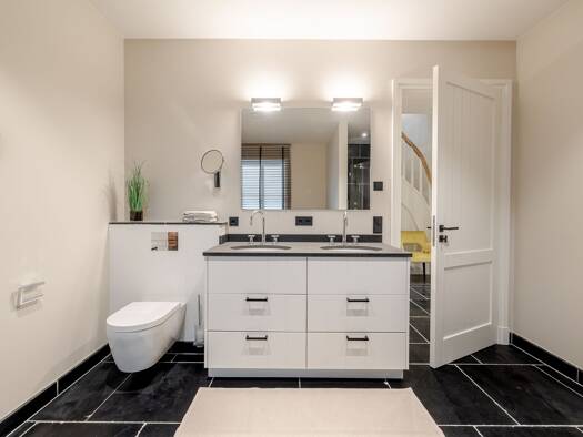 Die über 100 Jahre alten Mauerziegel verleihen diesem Neubau seinen besonderen Charme. Ausgewählte, hochwertige Baumaterialien wie Eichenholzdielen, Natursteinböden, Meranti-Hartholz sowie ein Gaskam...