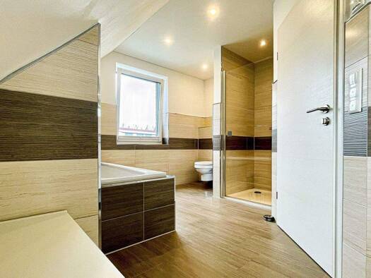 Dieses moderne Einfamilienhaus überzeugt mit einer durchdachten Raumaufteilung, hochwertiger Bauweise und einer komfortablen Ausstattung. Mit seinem klassischen Satteldach und der 45-Grad-Dachneigung...