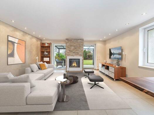 Diese moderne Villa verbindet großzügiges Wohnen, hochwertige Materialien und eine ruhige, grüne Lage. Bereits die gepflasterte Einfahrt und der gepflegte Garten vermitteln einen exklusiven ersten Ei...