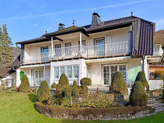 Kurzbeschreibung MANNELLA *Großzügige Unternehmervilla auf Traumgrundstück* - sanieren oder neu gestalten * Ruhige und begehrte Lage in Bad Honnef-Rhöndorf * Großes Grundstück (ca. 850?m²) mit Weitbl...