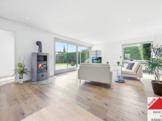 Dieses stilvolle Einfamilienhaus erfüllt höchste Wohnansprüche. Klare Linien, viel Tageslicht und eine offene Gestaltung prägen das in Weiß gehaltene Gebäude. Schon der repräsentative Eingangsbereich...