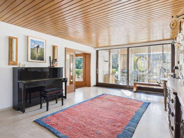 Das Haus wurde 1967 in Ziegelbauweise erstellt. In allen Räumen sind Holzdecken verbaut. Im ursprünglich offenen Kamin im Wohn-, Esszimmer wurde ein Kaminofeneinsatz installiert. In diesen Zimmern is...