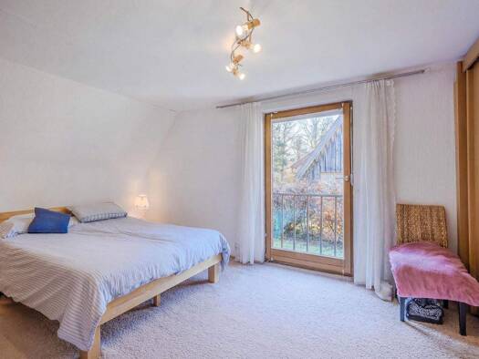 Ein Zuhause in schönster Natur, ruhig und privat gelegen am Ende einer äußerst selten befahrenen Straße, die wenige Meter entfernt an Feldern und Wiesen als Sackgasse endet. Auf einer leichten Anhöhe...