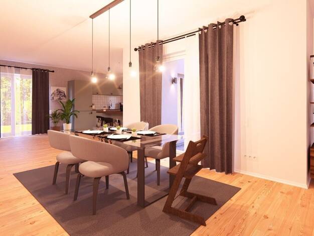 Ein Einfamilienhaus, das beeindruckt. Mit drei geräumigen Zimmern, einem großzügigen Bad und ideal für einen Wintergarten. Die angegebenen Maße beziehen sich auf die Variante mit 1,5-geschossigem Sat...