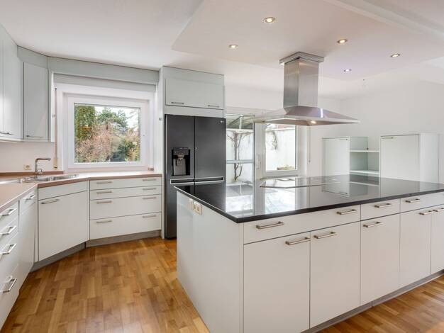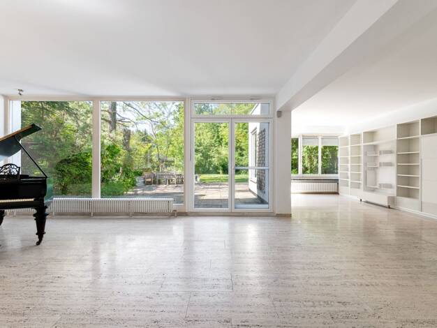 Das freistehende Einfamilienhaus präsentiert sich auf einem unwiederbringlichen, 3.895 m² großen Grundstück, das unmittelbar an die Amper grenzt. 1975 in dem geradlinigen Architektenstil jener Jahre ...