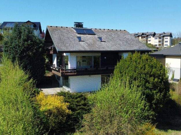 Das schöne Architektenhaus wurde 1980 in Massivbauweise errichtet und 1984 mit einem Anbau erweitert. 1986 wurde das Anwesen noch durch eine Garage ergänzt. Das Haus verfügt über einen sehr gut gepla...