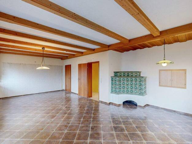 • Haus in L-Form, Hof zur Hälfte überdacht • 5-7 Zimmer • Wohn-/Essküche • 3 Bäder (renoviert) • Große Veranda 50m2, Hälfte überdacht, auf Stahlpfosten und Stahlträger, Leimbinder und Bodenbretter si...