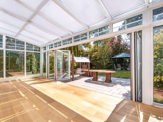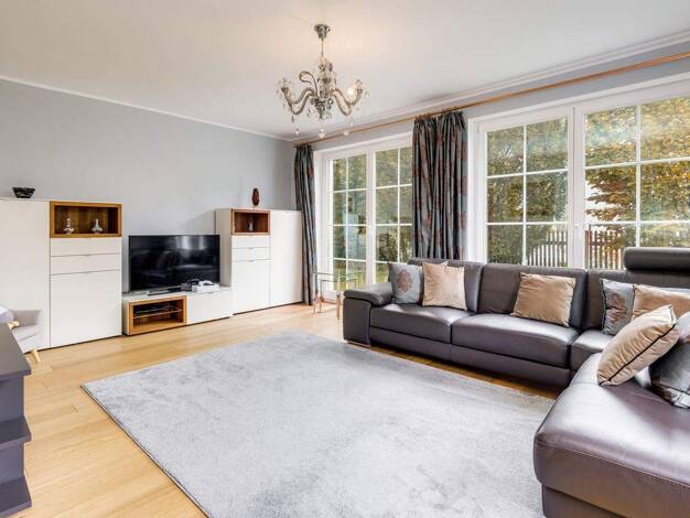 Eingebettet in einen großen sonnigen Garten präsentiert sich diese barrierefreie Villa als privater Rückzugsort von besonderer Qualität. Alter Baumbestand und eine Außenanlage schaffen ein außergewöh...