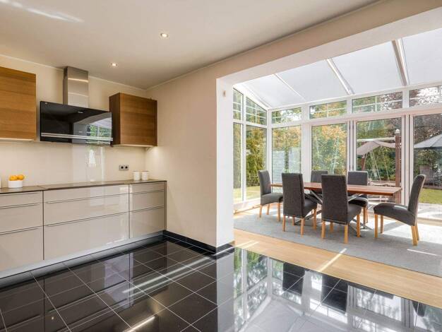 Angenehm von der Straße zurückversetzt, am Ende eines Privatwegs, befindet sich dieses attraktive Einfamilienhaus. 1962 erbaut und 2013/2014 mit großer Sorgfalt und Stilempfinden modernisiert, strahl...