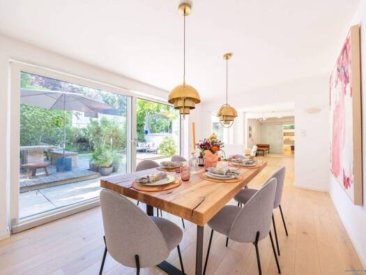 Inmitten eines liebevoll angelegten Gartens präsentiert sich dieses lichtdurchflutete Architektenhaus aus dem Jahr 1970 mit einem stilvollen Anbau aus dem Jahr 1999. Auf mehreren Ebenen in einem eleg...