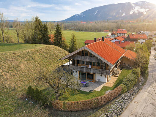 Dieses schöne traditionelle Landhaus wurde 1994 im Tegernseer Architekturstil erbaut und fügt sich sehr harmonisch in die ländliche Umgebung ein. Ein kleiner Bachlauf durchquert das ca. 1.747 m² groß...