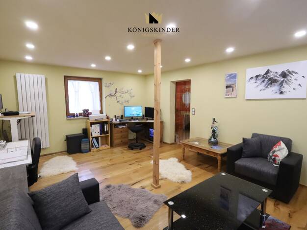 Das Anwesen teilt sich wie folgt auf: Untergeschoss: Flur, Kellerraum, Werkstatt, Waschküche Erdgeschoss: Flur, Kinderzimmer, Schlafzimmer, Wohnzimmer, Küche Dachgeschoss: Flur, Tageslichtbad, Schlaf...