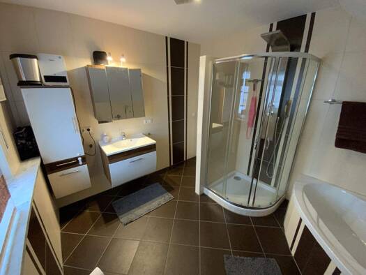 Dieses stilvolle Einfamilienhaus überzeugt durch eine durchdachte Raumaufteilung, moderne Ausstattung und viel Platz für die ganze Familie. Mit insgesamt fünf Zimmern und großzügigen Wohnflächen biet...