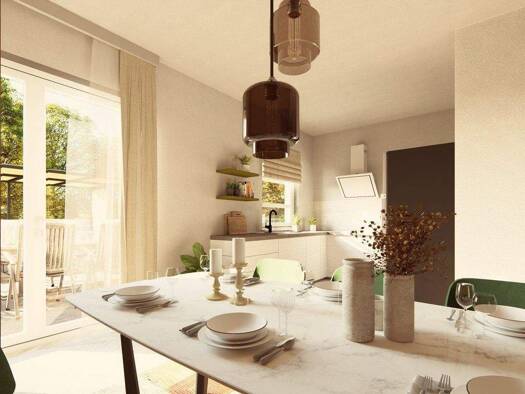 Klare Architektur, ein durchdachter Grundriss und außerordentlich helle Räume machen unser PLACE 5 zu einem Zuhause, das keine Wünsche offenlässt. Ob für die große Familie, gesellige Runden mit Freun...