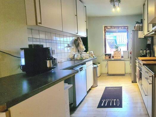 Das voll unterkellerte Gebäude wurde im Jahr 1996 als Kampa-Fertighaus auf einem ca. 520 m² großen Grundstück errichtet und verfügt über eine Wohnfläche von ca. 126,95 m² und einer Nutzfläche von 88,...