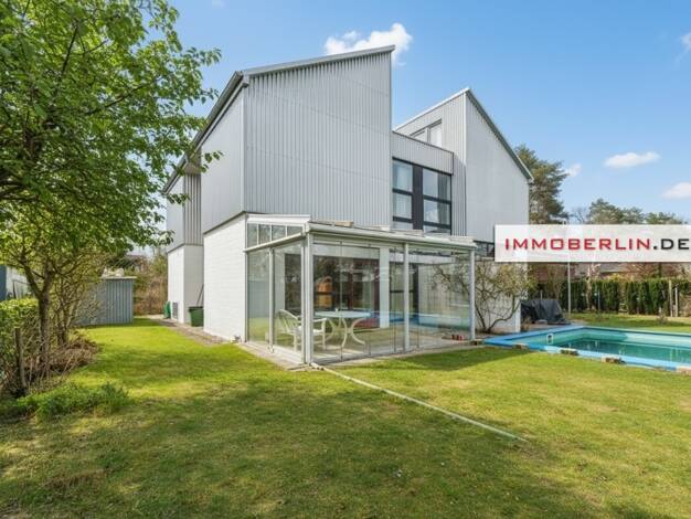 Die wichtigsten Fakten im Überblick: . Gepflegtes Einfamilienhaus mit Indoor-Pool, großer Sonnenterrasse und Garten . Idyllische und familienfreundliche Wohnlage in Konradshöhe . Grundstücksfläche ca...