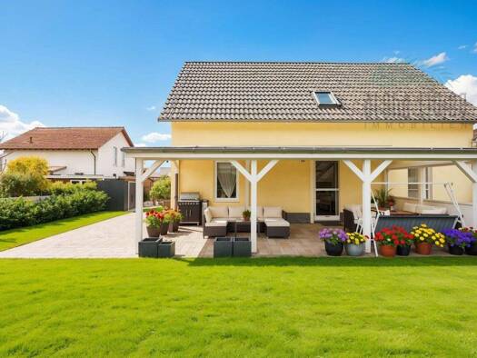 Dieses wunderschöne Einfamilienhaus in Müggelheim vereint beeindruckende Architektur, modernen Wohnkomfort und eine idyllische Lage zu einem perfekten Zuhause. Auf einem großzügigen 734 m² großen Gru...