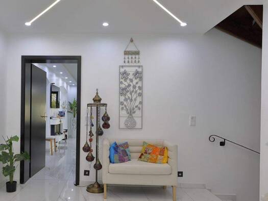 Beim Betreten des Hauses öffnet sich ein harmonisch gestalteter, offener Wohnbereich, der sofort ein Gefühl von Großzügigkeit und Behaglichkeit vermittelt. Der Eingangsbereich führt direkt in den lic...