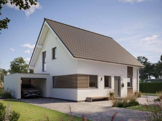 Das Haus ist auf einem realen Baugrundstück geplant oder auf einem Grundstück in einer Planungsphase. Die Bilder zeigen ggf. Extras, die im Rahmen des Bebauungsplans noch geprüft werden müssen. Bitte...
