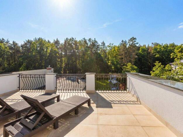Diese historische, modernisierte Villa befindet sich auf einem großzügigen Grundstück mit wunderschönem Blick auf den angrenzenden Wald. Die Wohnfläche verteilt sich über das ausgebaute Souterrain, d...