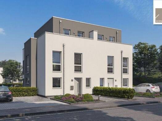 Das Kern-Haus Forneo überzeugt als Doppelhaus auf drei Etagen im Bauhaus-Stil! Perfekt wird das Haus durch die Dachterrasse, die für Ruhe und Entspannung im oft trubeligen Alltag sorgt. Im Erdgeschos...