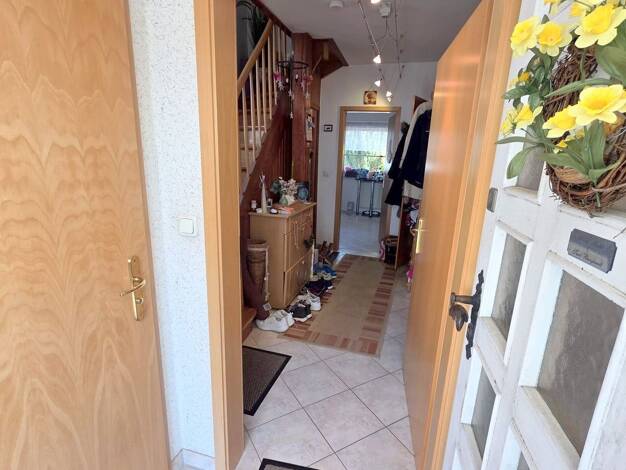 Erdgeschoss: Eingangsbereich, Flur, Garderobe, Tageslichtbad (70er, Badewanne), große Wohn-/ Essküche, Kammer, Wohnzimmer, Büro Obergeschoss: geräumige Diele, drei unterschiedlich große Schlafzimmer,...