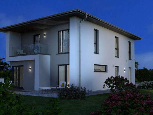 Die Stadtvilla überzeugt durch ihre weitläufige und wohnliche Raumaufteilung. Baufamilien können nach eigenem Geschmack den Grundriss des Hauses variieren und zum Beispiel einen Erker oder eine Doppe...