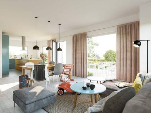Dieses Fertighaus von LivingHaus ist nicht nur ein Gebäude, sondern ein Traum vom Eigenheim, das ganz nach deinen individuellen Wünschen und Vorstellungen projektiert wird. Mit einer großzügigen Wohn...