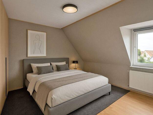Unter dem Satteldachklassiker steckt jede Menge Liebe zum Detail. Schon die Fassade spricht für sich: Das Zwerchhaus, die Farbakzente und der gelungene Materialmix aus Putz und Glasverkleidung verkör...