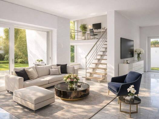 Neubau-Stadtvilla auf 503?m² Grundstück - modern und lichtdurchflutet Auf einem voll erschlossenen Grundstück mit 503?m² entsteht eine massiv gebaute Stadtvilla - mit ca. 185?m² Wohnfläche, zwei Voll...