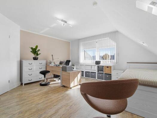 Dieses im Jahr 2000 erbaute, moderne Einfamilienhaus mit stilvollem Pultdach vereint zeitgemäßes Wohnen mit vielfältigen Nutzungsmöglichkeiten. Das großzügige Grundstück mit ca. 1200 m² Fläche bietet...